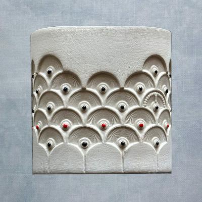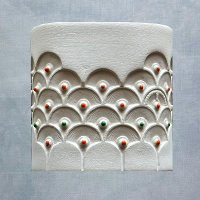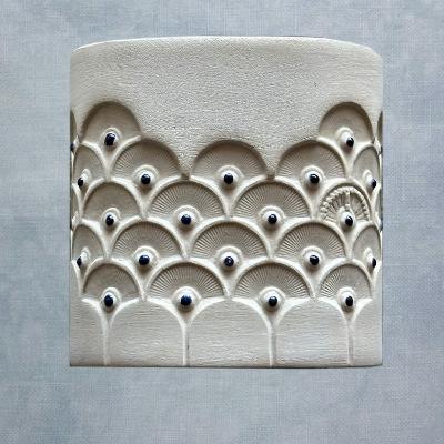 Beauty with decorative drops on the front and colorful glaze accent line inside and around the edge.